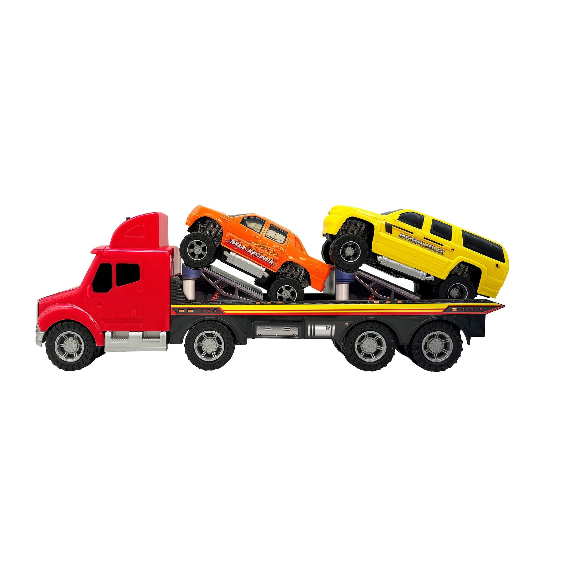 - Features one car carrying big rig, one replica Chevy Silverado, one replica Chevy Suburban, one replica Cadillac Escalade, one replica Chevy Corvette, a towing platform, and five oil drums