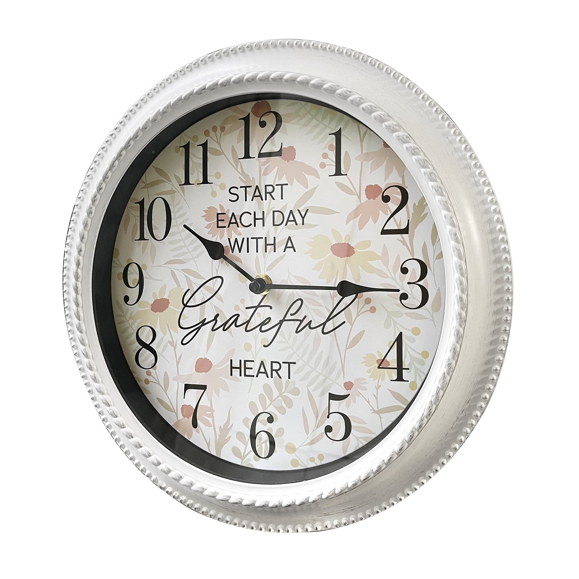 - Mainstays 12 in Round Analog Sentiments Clock "Start Each Day with a Grateful Heart", Brushed White