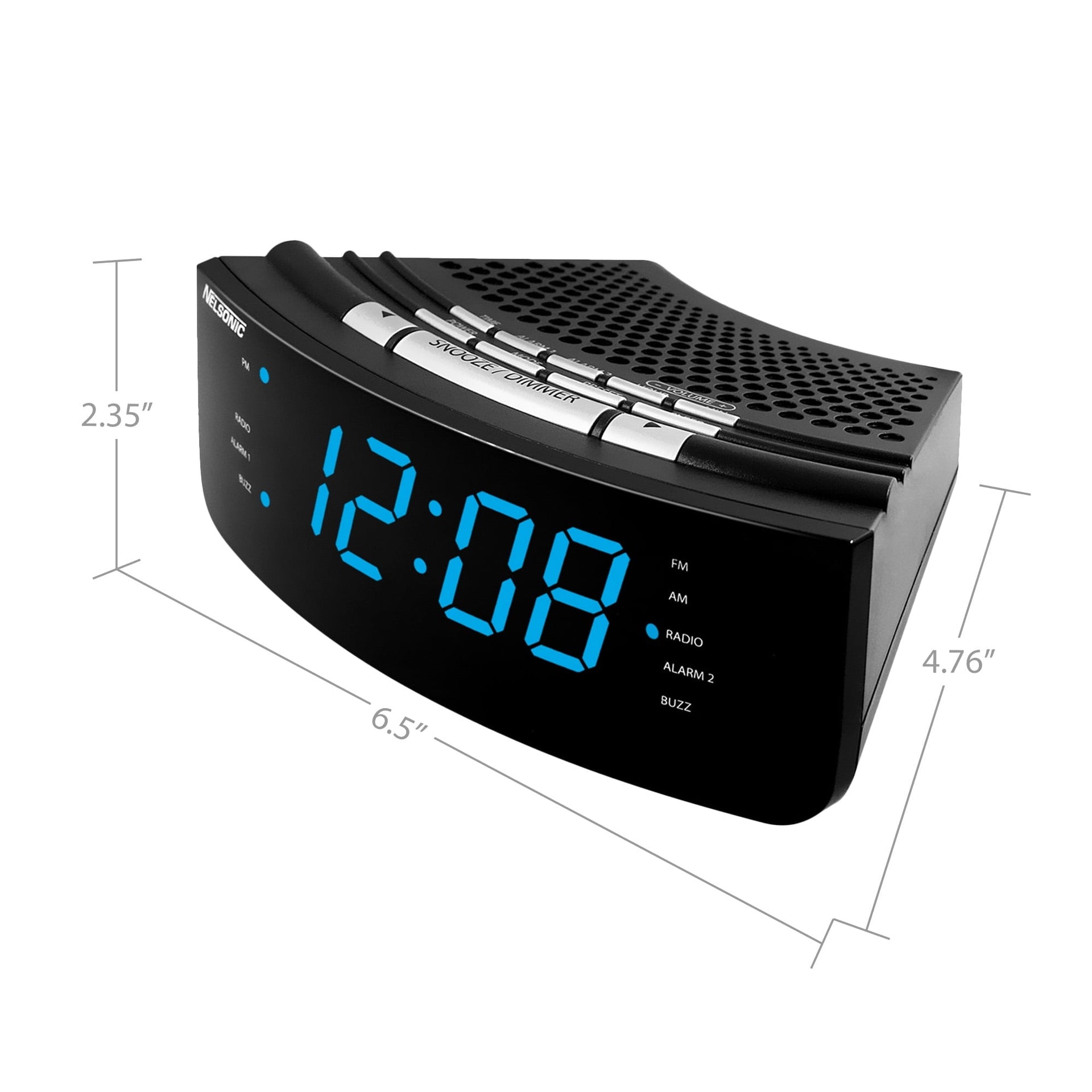 - NELSONIC Digital AM/FM Clock Radio with Built in Aux Cord, Black with Blue LED Display