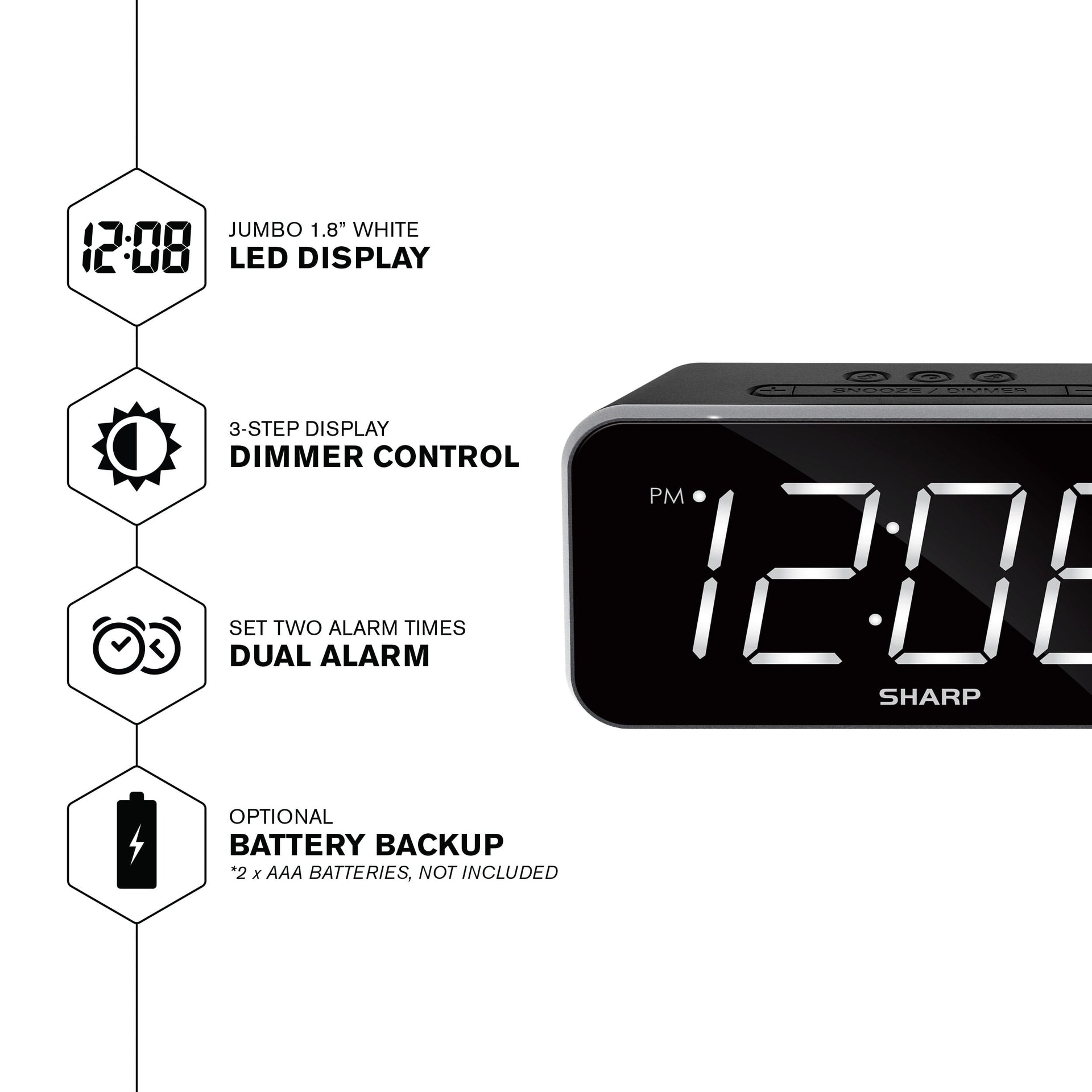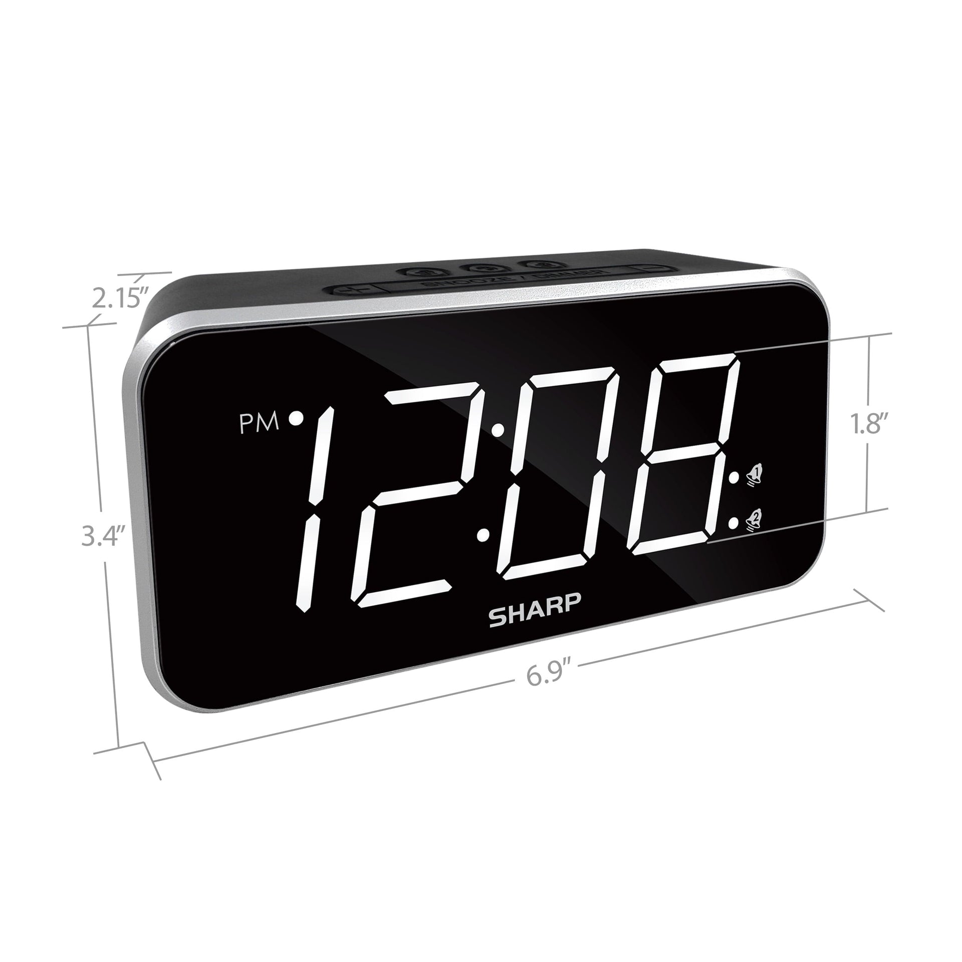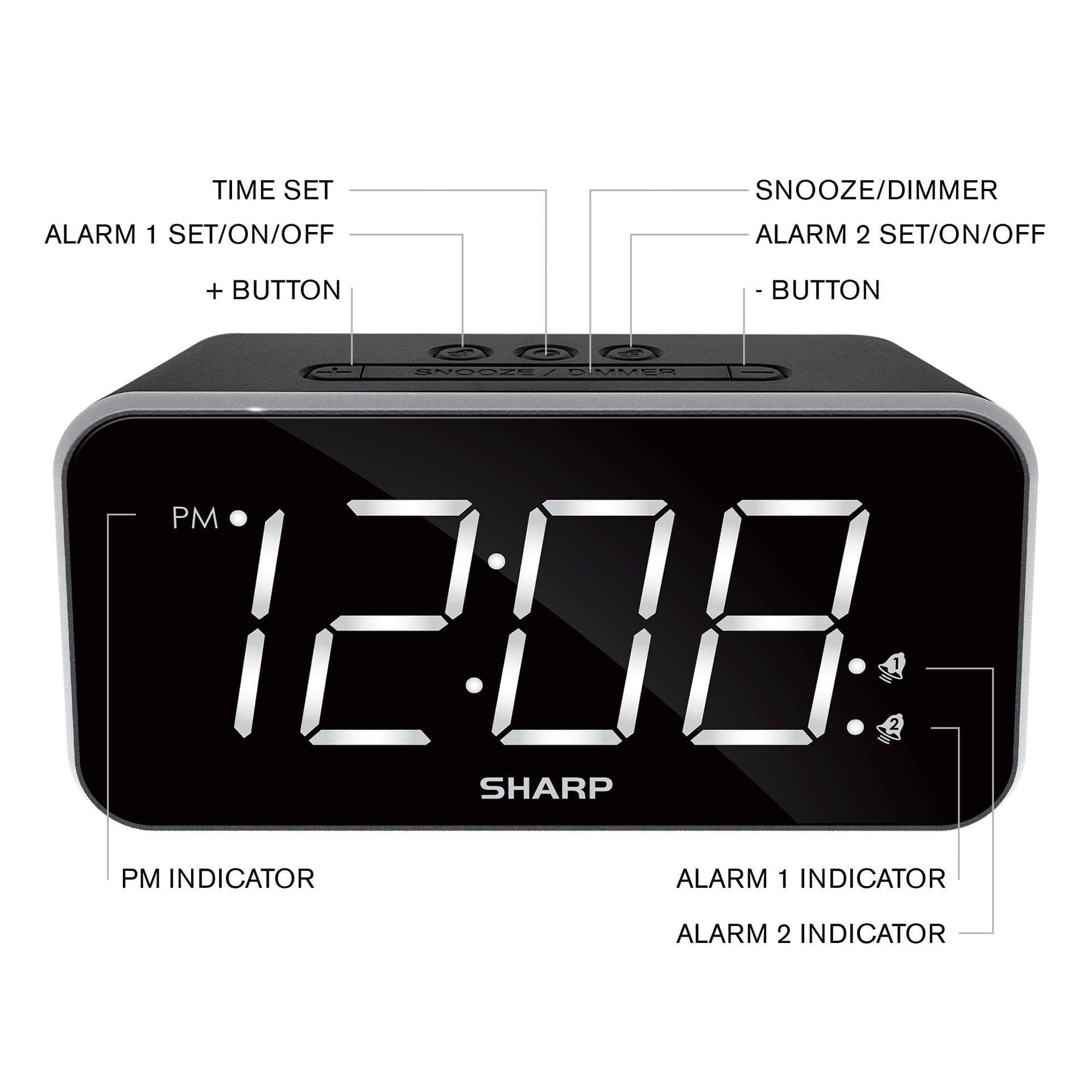 - SHARP Dual Alarm Clock with Jumbo Easy to Read 1.8” White LED Display, Black Case