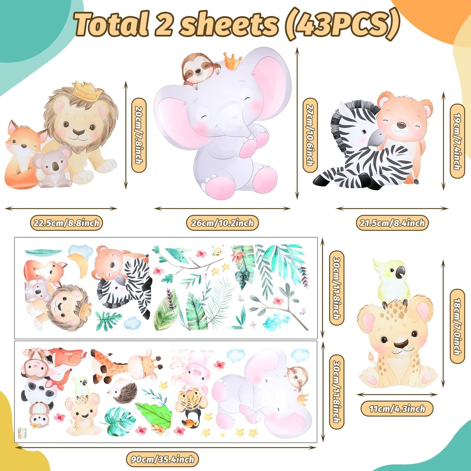 - Product design: the wall decoration children's rooms are themed towards forest animals, including elephants, lions, pandas, giraffes, tigers, zebras, hamsters and other rich elements. Wall sticker children's room boys are designed with bright colours. Effectively attract children's attention and stimulate their imagination
