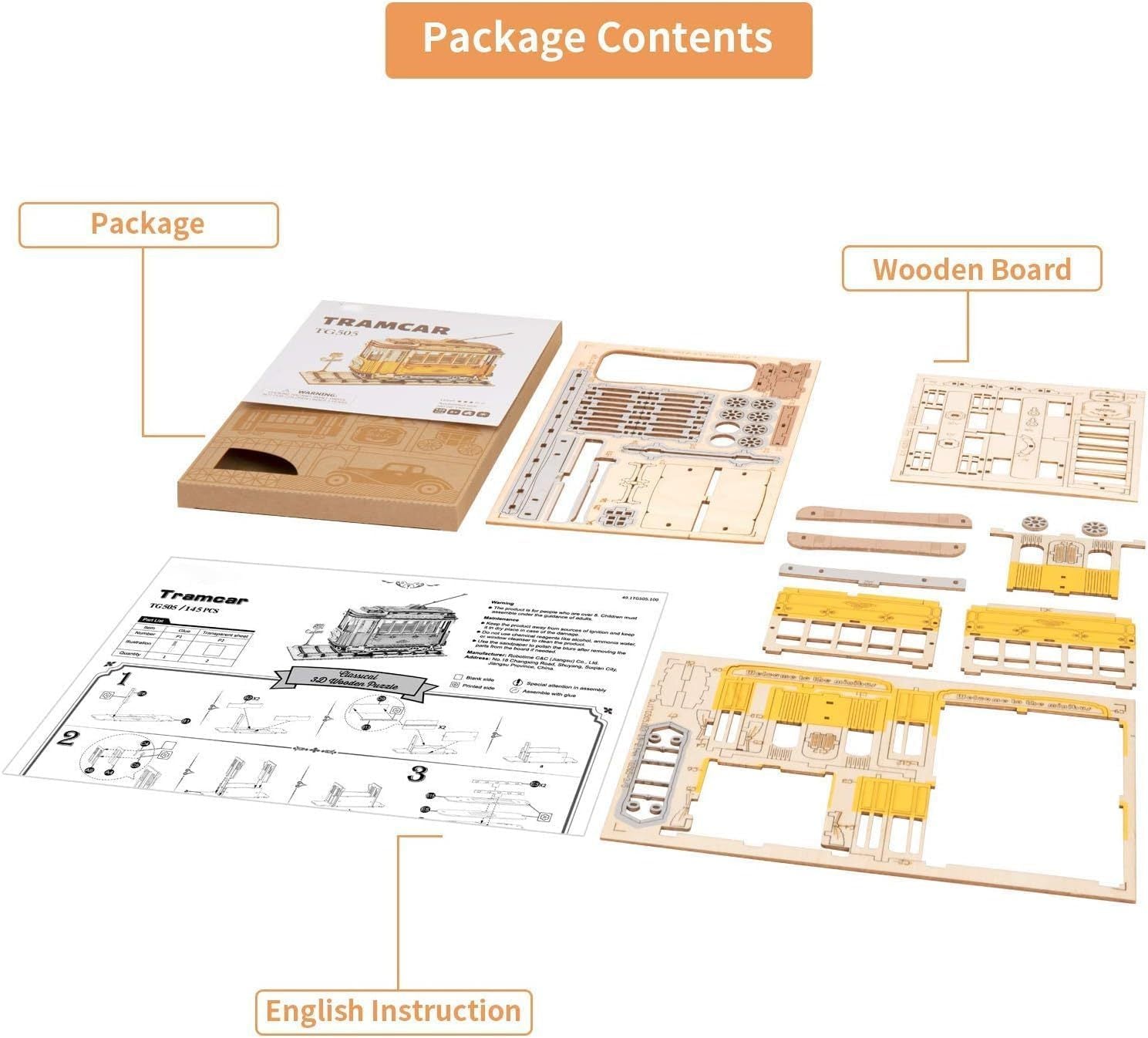 - ROBOTIME 3D Puzzle Tram Car Wooden Model Kits For Adult To Build Your Own Laser Cut Jigsaw Building Construction Crafts Kits And Best Birthday Gifts TG505