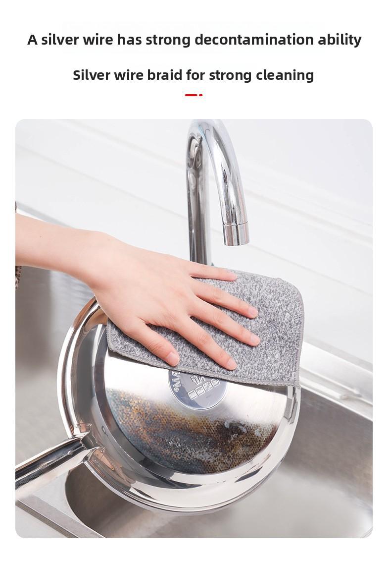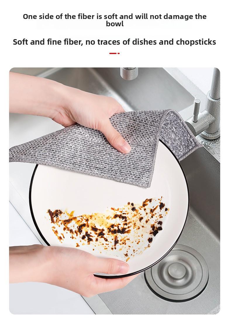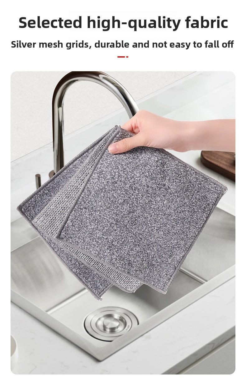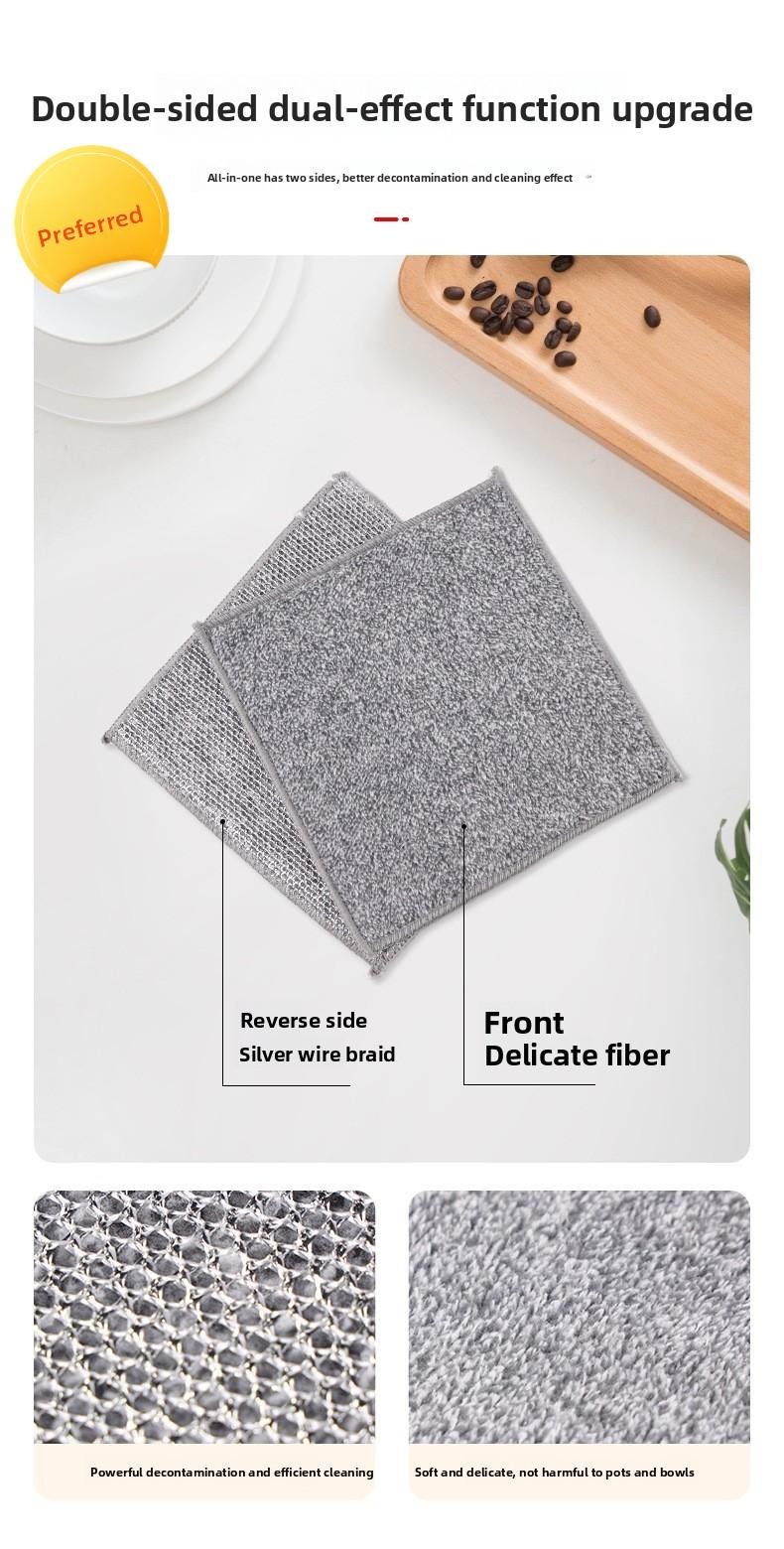 This dishcloth features a dual-sided integrated design. One side is made of high-quality fabric, while the other side consists of soft yet durable metal wires. This scratch-resistant metal wire dishcloth not only offers water absorption but also effectively removes stubborn stains. It’s reusable, allowing one cloth to be used multiple times.