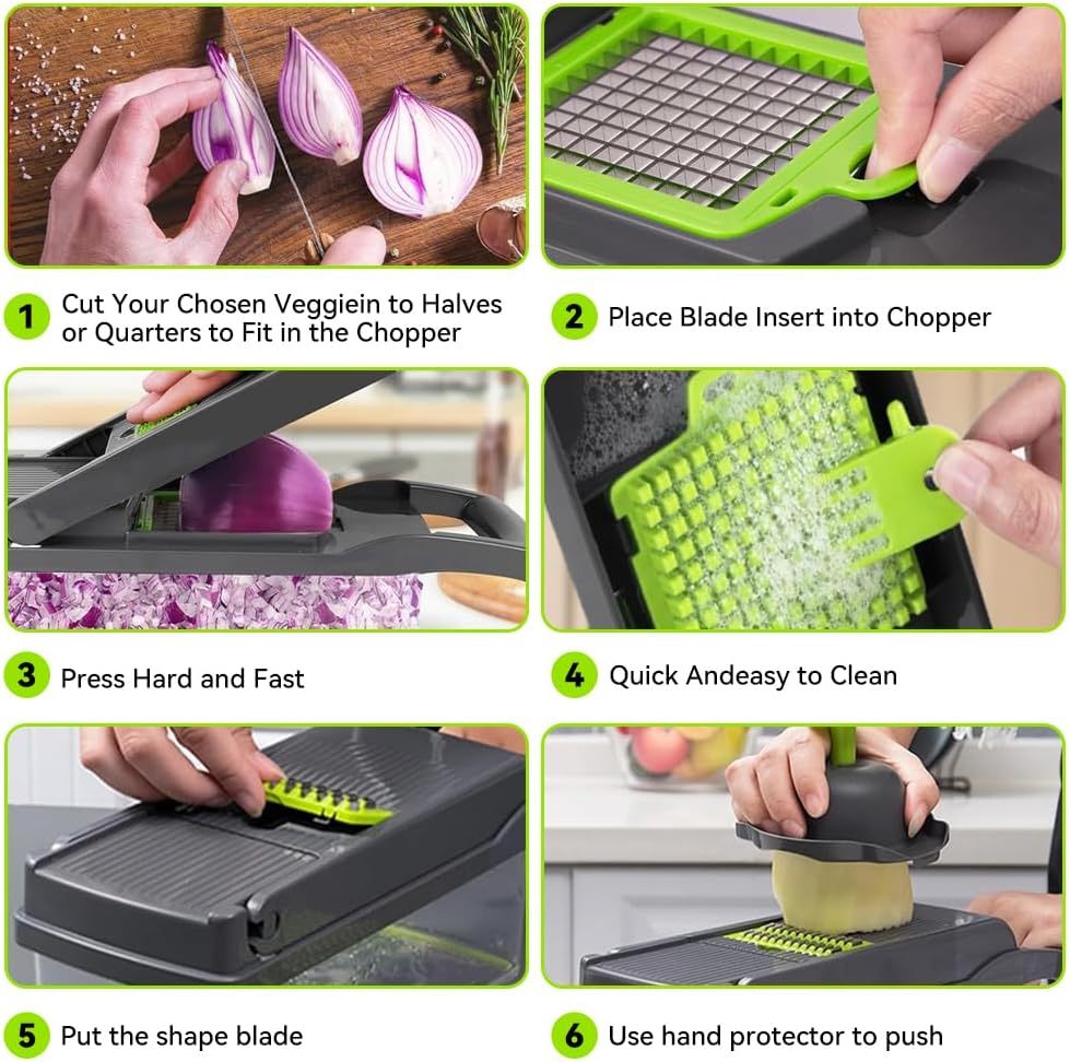 Efficient Cutting: The sharp stainless steel blades ensure quick and even cutting of onions, carrots and other vegetables with ease.