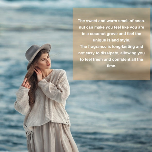 Our coconut perfume spray contains coconut extract, vanilla, sandalwood extract. It can enhance your charm and infectiousness, make yourself stand out in social situations, attract more attention and appreciation, help create a romantic atmosphere, increase the attractiveness of emotional communication, and make dates more unforgettable. Its use method is very simple: spray perfume on the wrist, neck and behind the ears, or spray perfume in the air and turn it into a mist, so that perfume can be evenly distributed throughout the body, leaving a fragrant fragrance. The sweet and warm fragrance makes you feel like you are in a coconut grove, experiencing the unique island scenery.