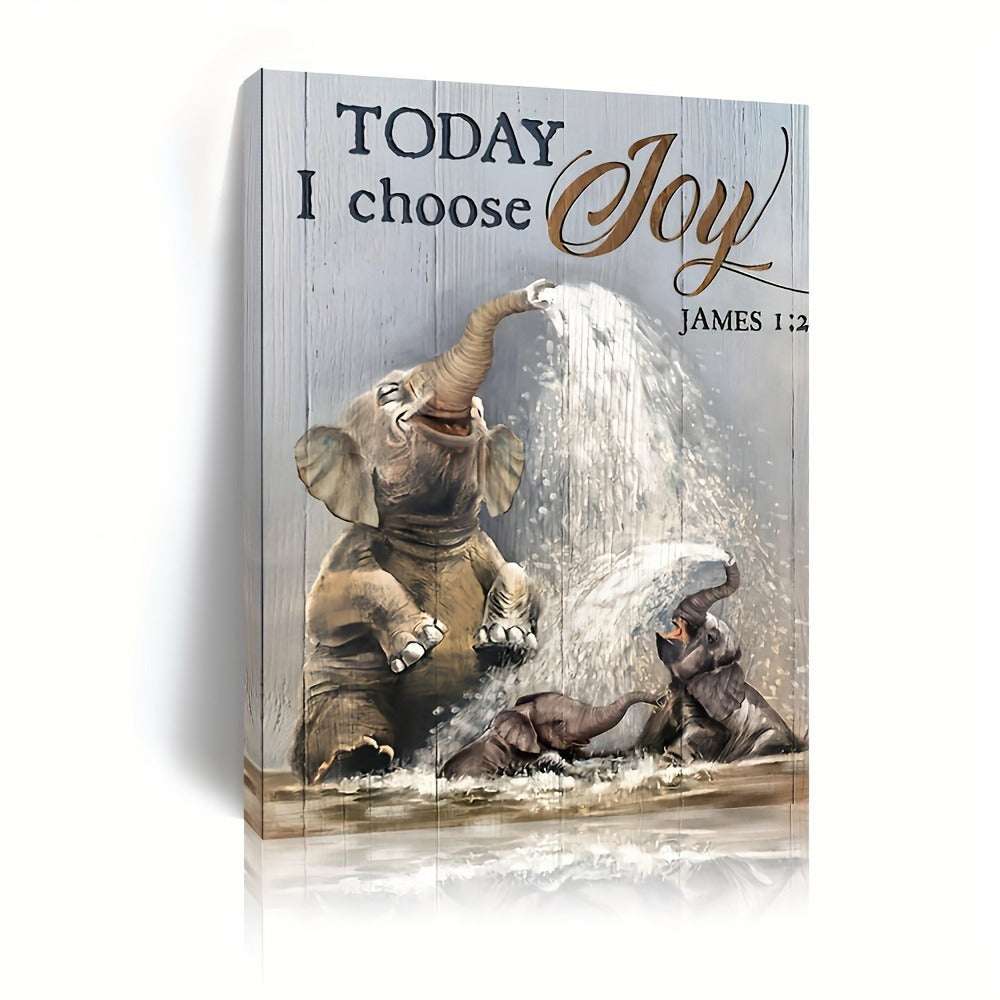 1pcs Canvas Painting With Wood Frame, Ready To Hang, Funny Elephant Bathroom Cute Elephant Wild Animal Wall Art Print For Home Decoration, Living Room And Bedroom, Holiday Gift For Her Or Him