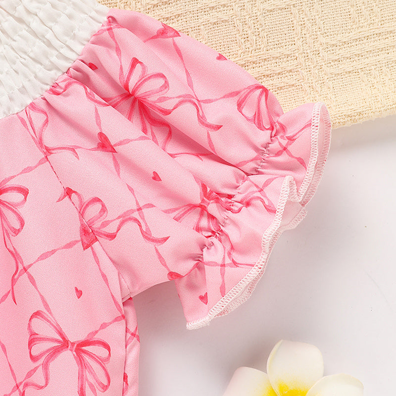 Baby Girl's Bowknot Romper – "Daddy's Girl" Printed Bubble Sleeve Jumpsuit