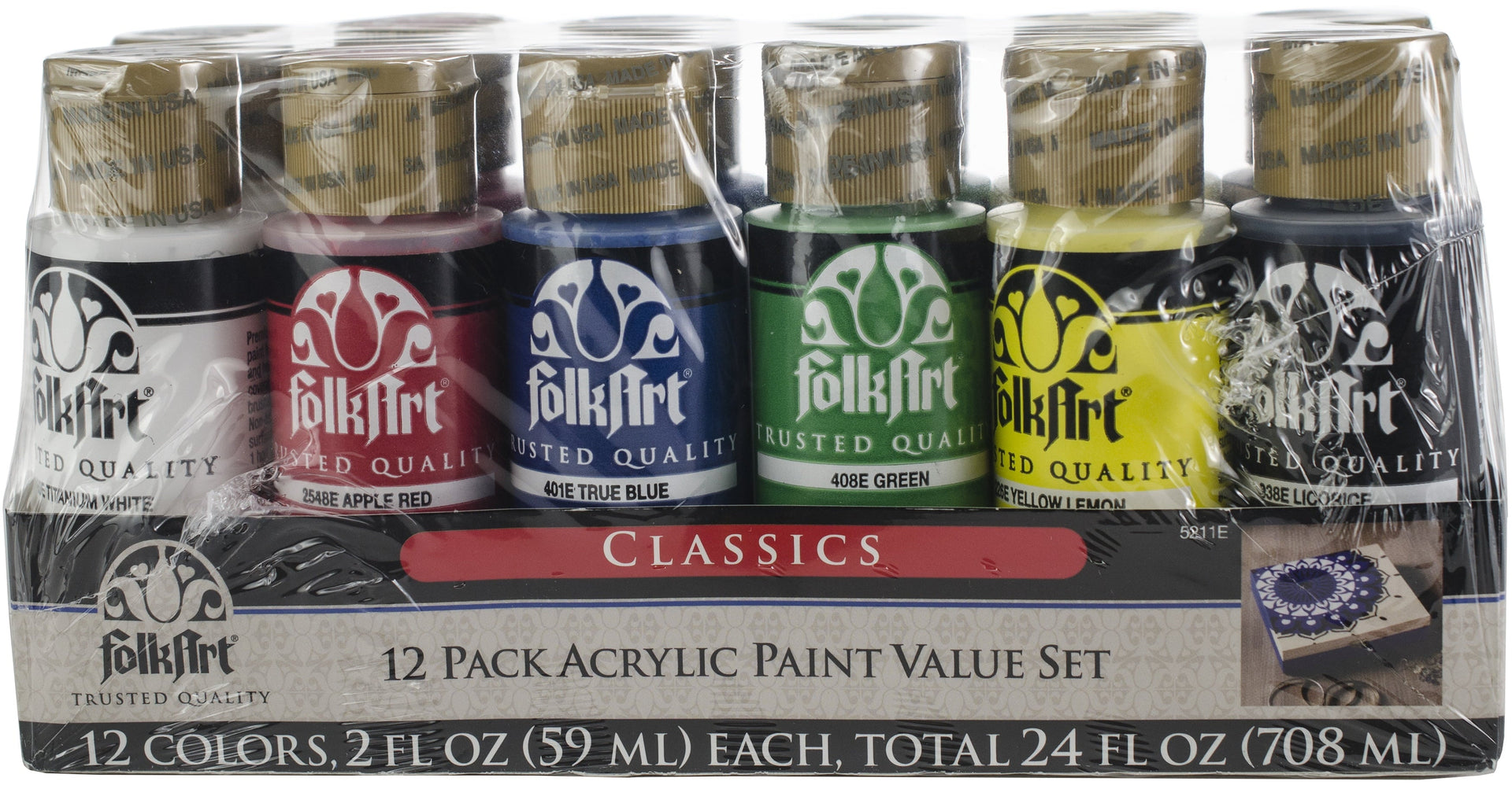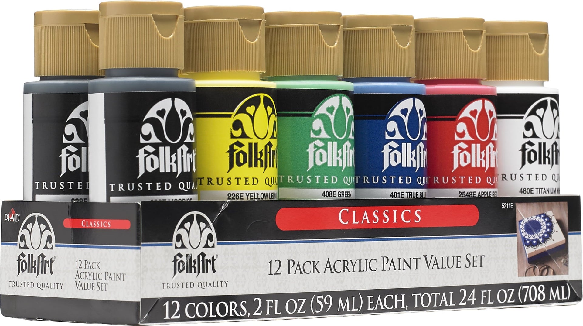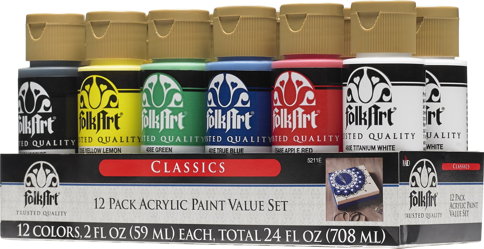 FolkArt Matte Acrylic Craft Paint Set, Classic, 24 fl oz, 12 Piece