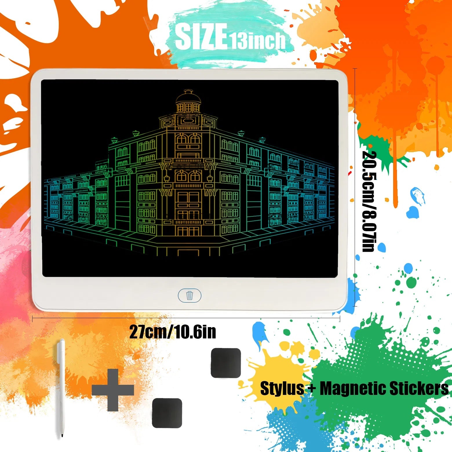 - 13 Inch Colorful Toddler Doodle Board Drawing Tablet, Erasable Reusable Electronic Drawing Pads, Educational and Learning Toys for Kids