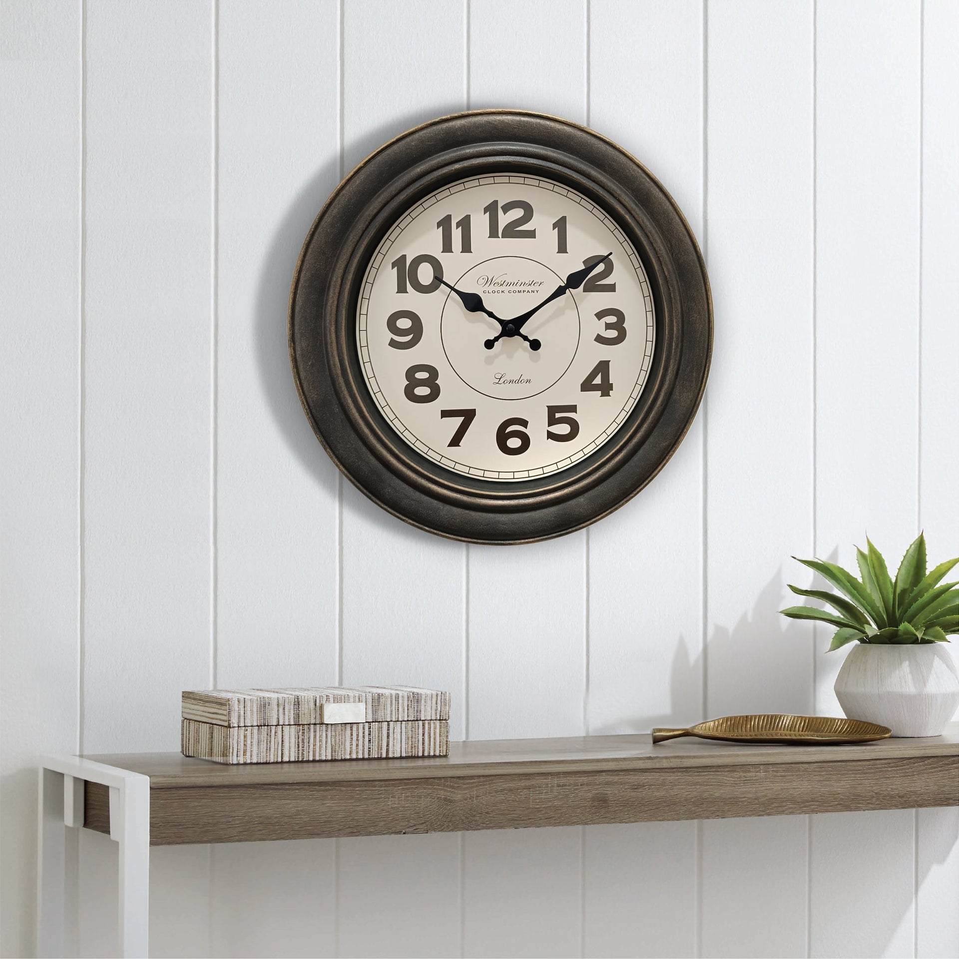 - Mainstays 15 inch Analog Wall Brushed Copper Clock: