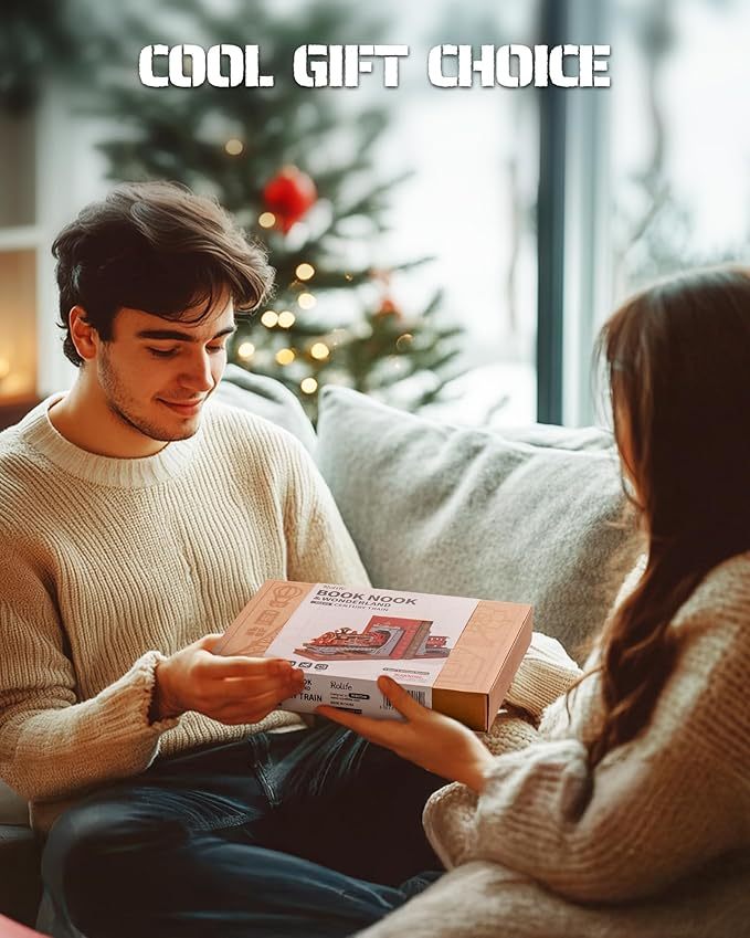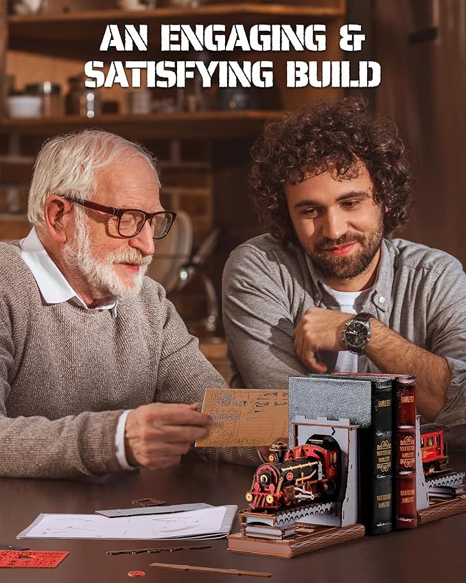 ROBOTIME Book Nook Book Ends Kits Century Train DIY Booknook 3D Wooden Puzzle Model Kit Bookend Bookshelf Decoration Gifts For Adults Kids Teens