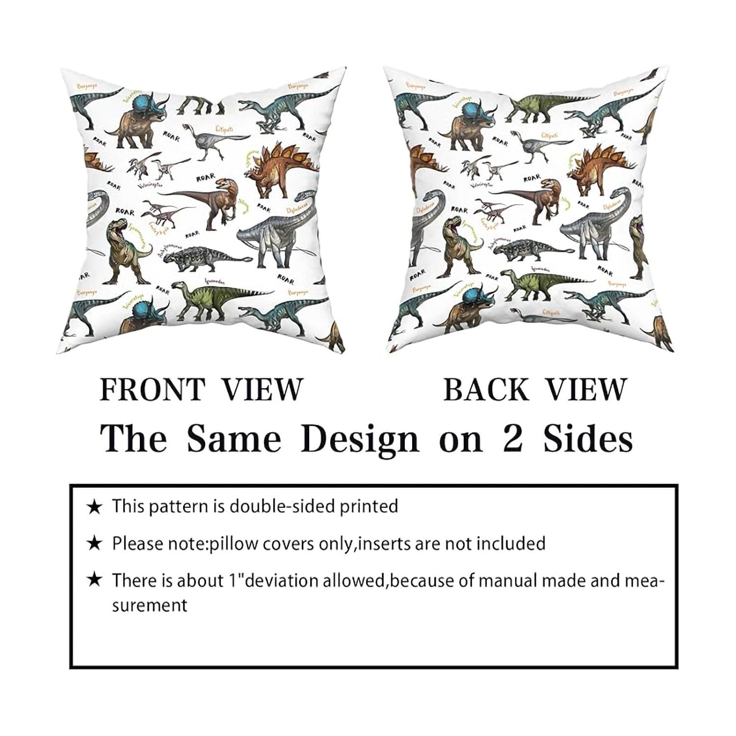 【SPECIFICATION】 Measures 18x18 inches (45x45 cm). Just the right size for a patio, chair or sofa. Package includes a set of 2 colorful dino pillowcases, excluding inserts (no pillows).