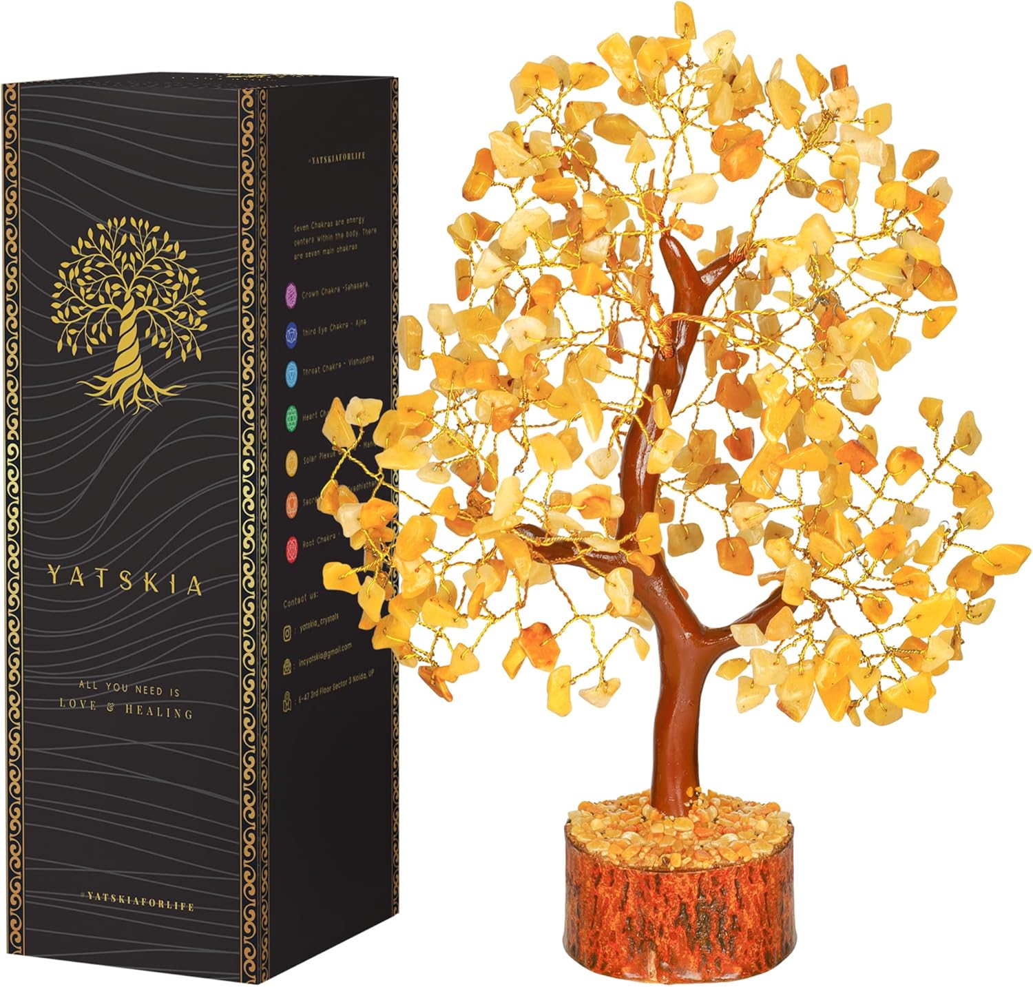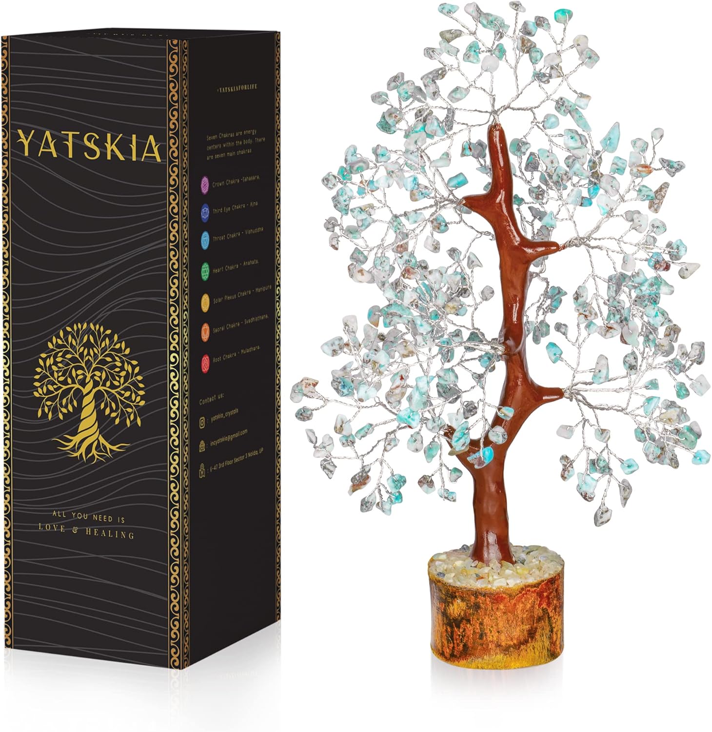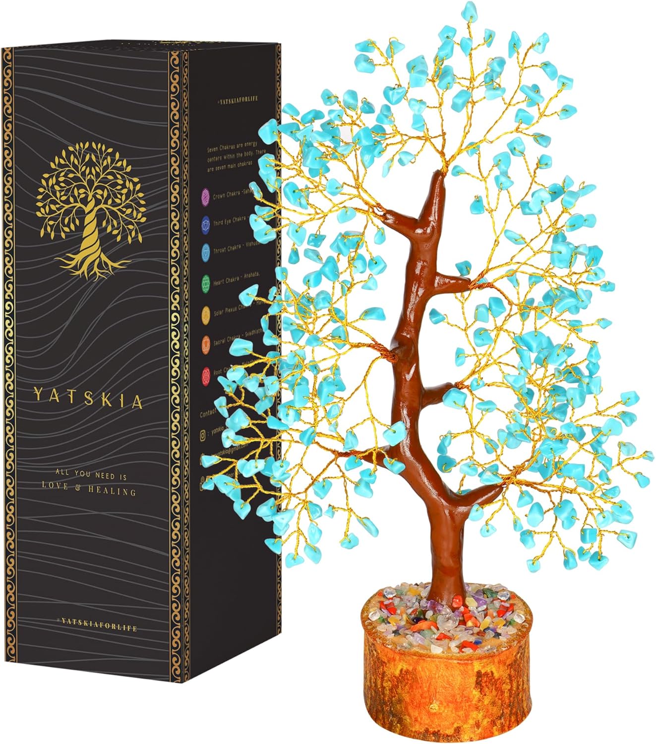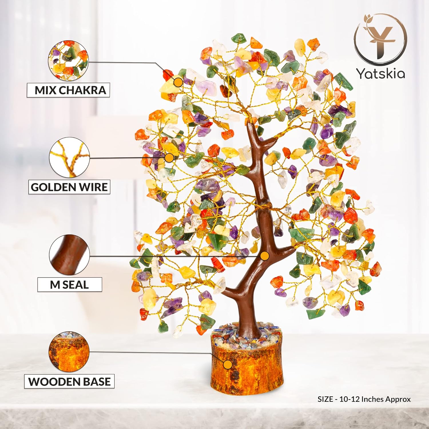 Beautifully Handcrafted Chakra Tree: This Yatskia Chakra Crystal Tree features all seven chakra gemstones with a wooden base and a golden wire trunk covered with m-seal. Standing approximately 10-12 inches tall, it creates a space where energy can flow freely and attract positive vibes. Perfect as birthday gifts for women, mothers day gifts, or sister birthday gifts.