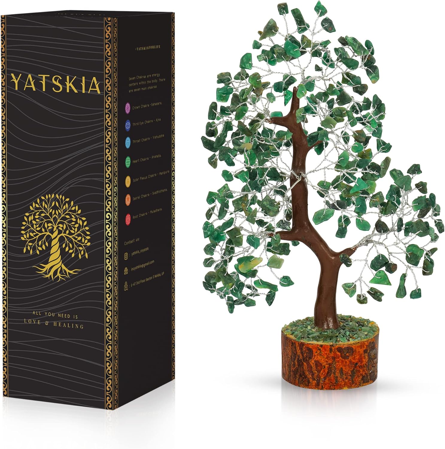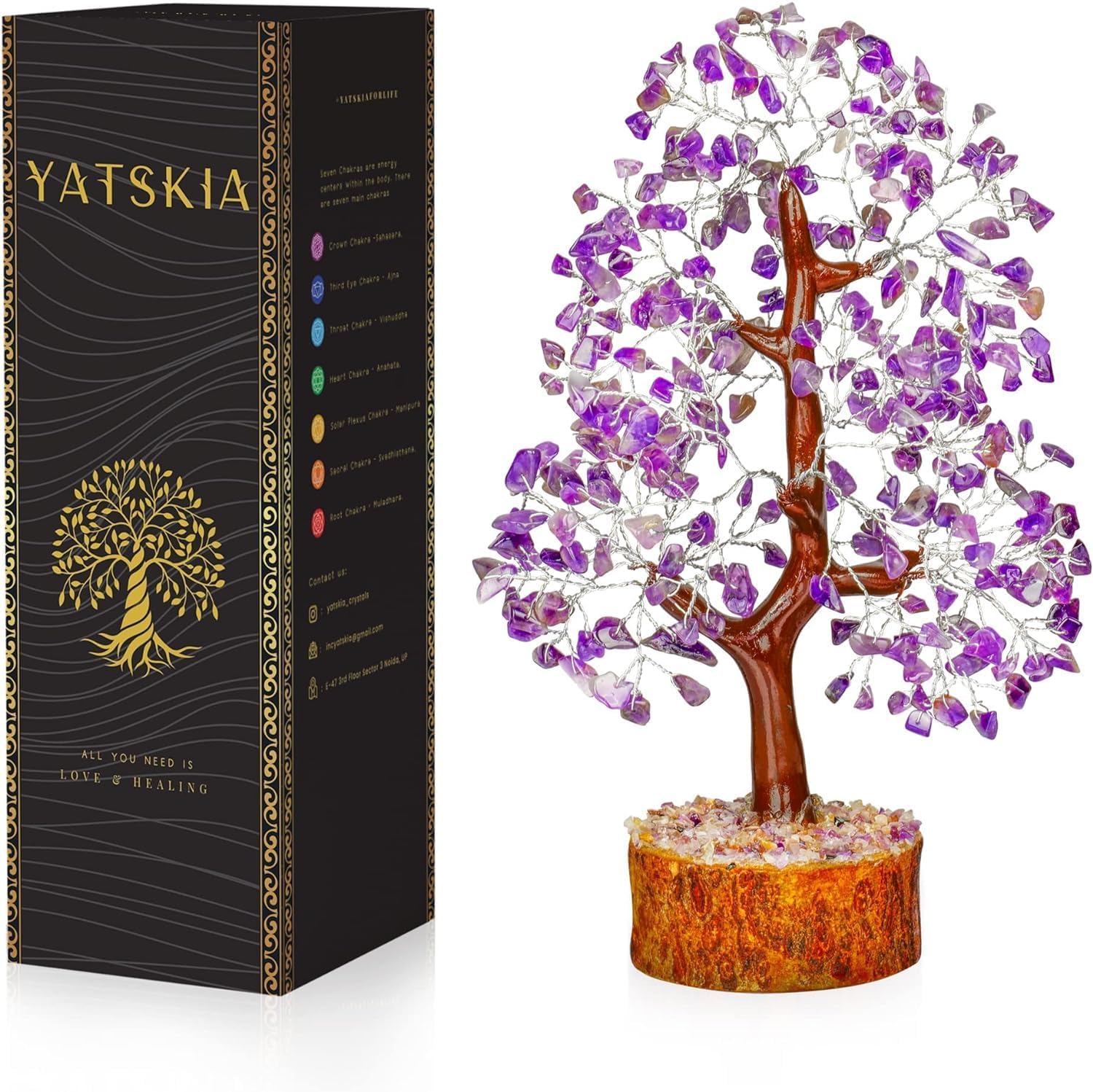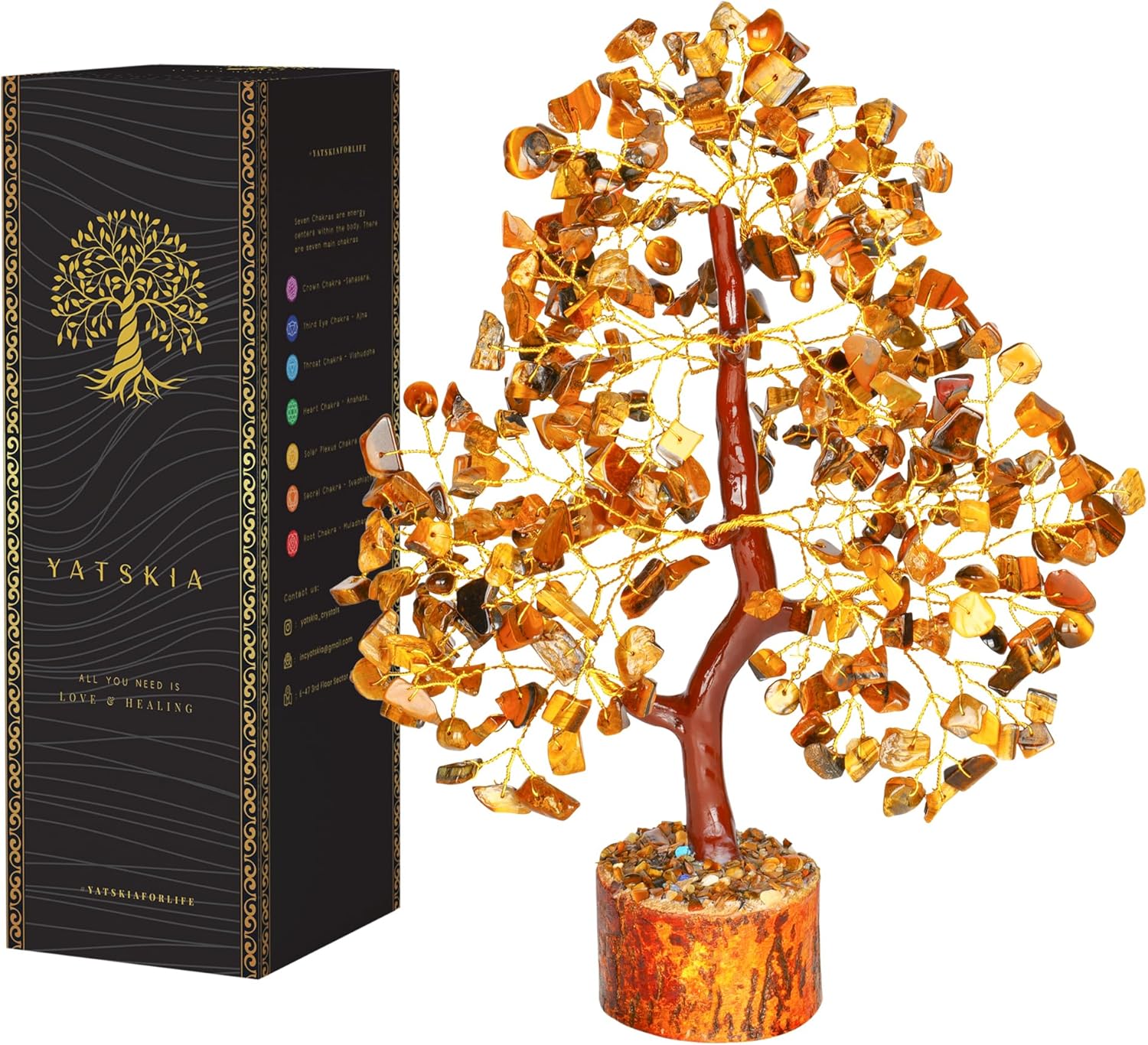 Beautifully Handcrafted Chakra Tree: This Yatskia Chakra Crystal Tree features all seven chakra gemstones with a wooden base and a golden wire trunk covered with m-seal. Standing approximately 10-12 inches tall, it creates a space where energy can flow freely and attract positive vibes. Perfect as birthday gifts for women, mothers day gifts, or sister birthday gifts.