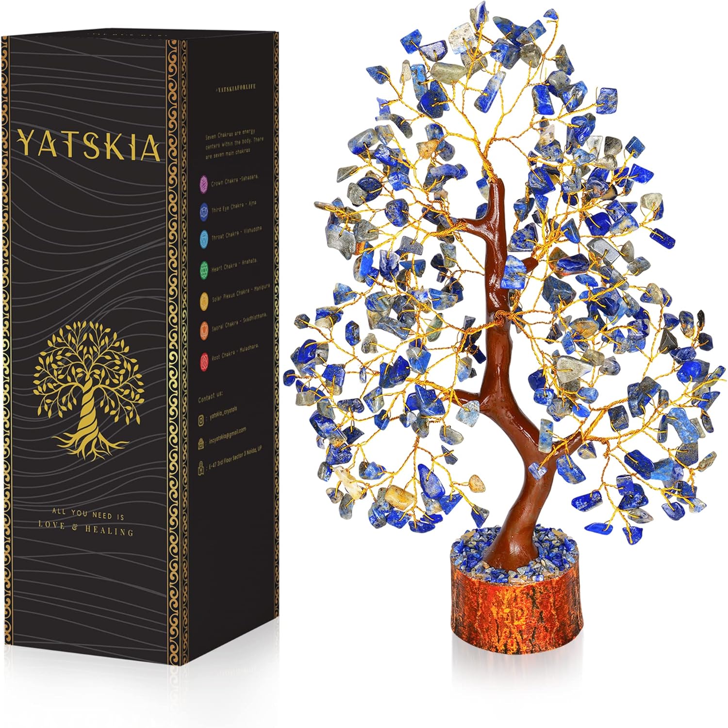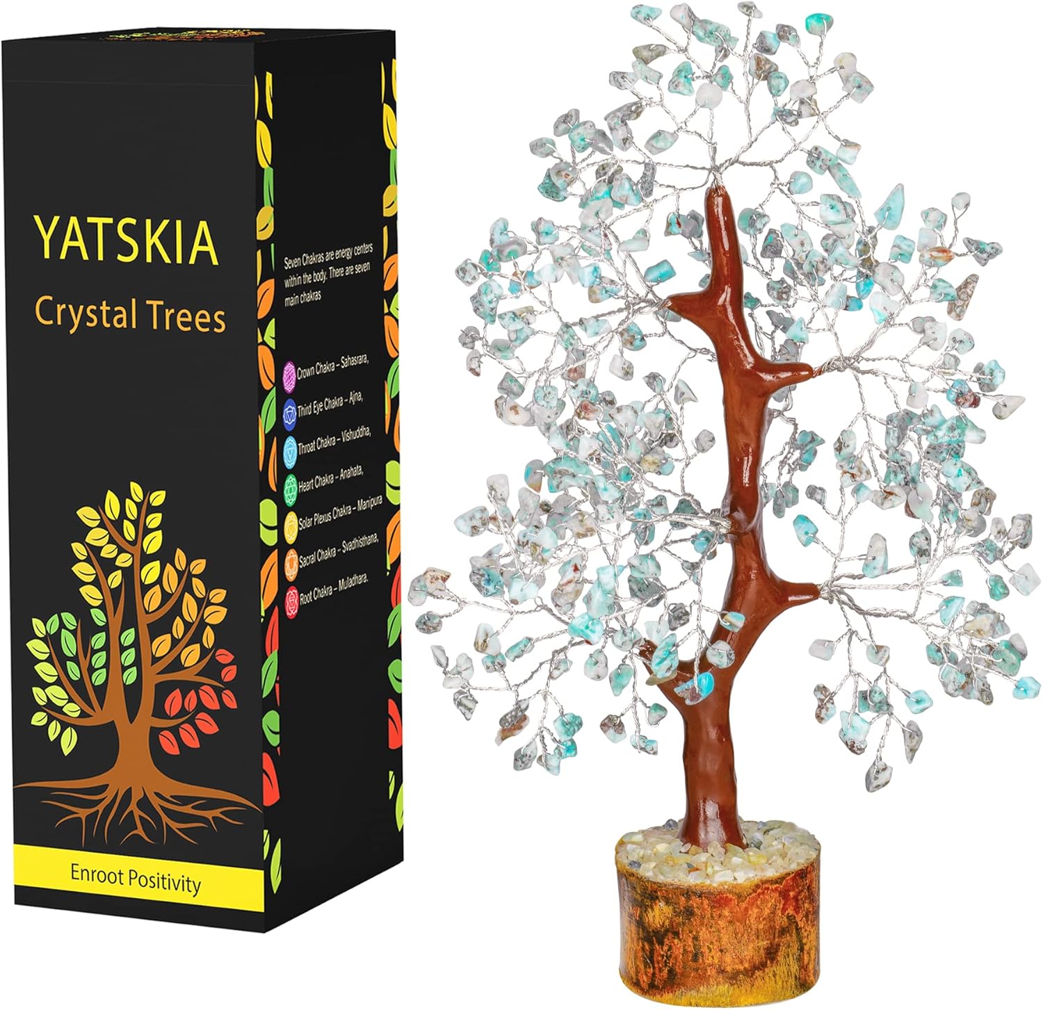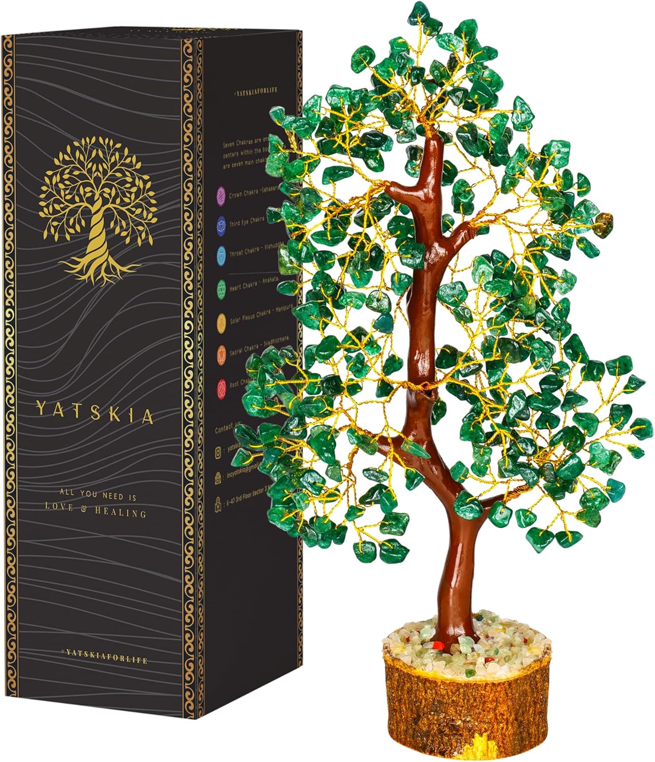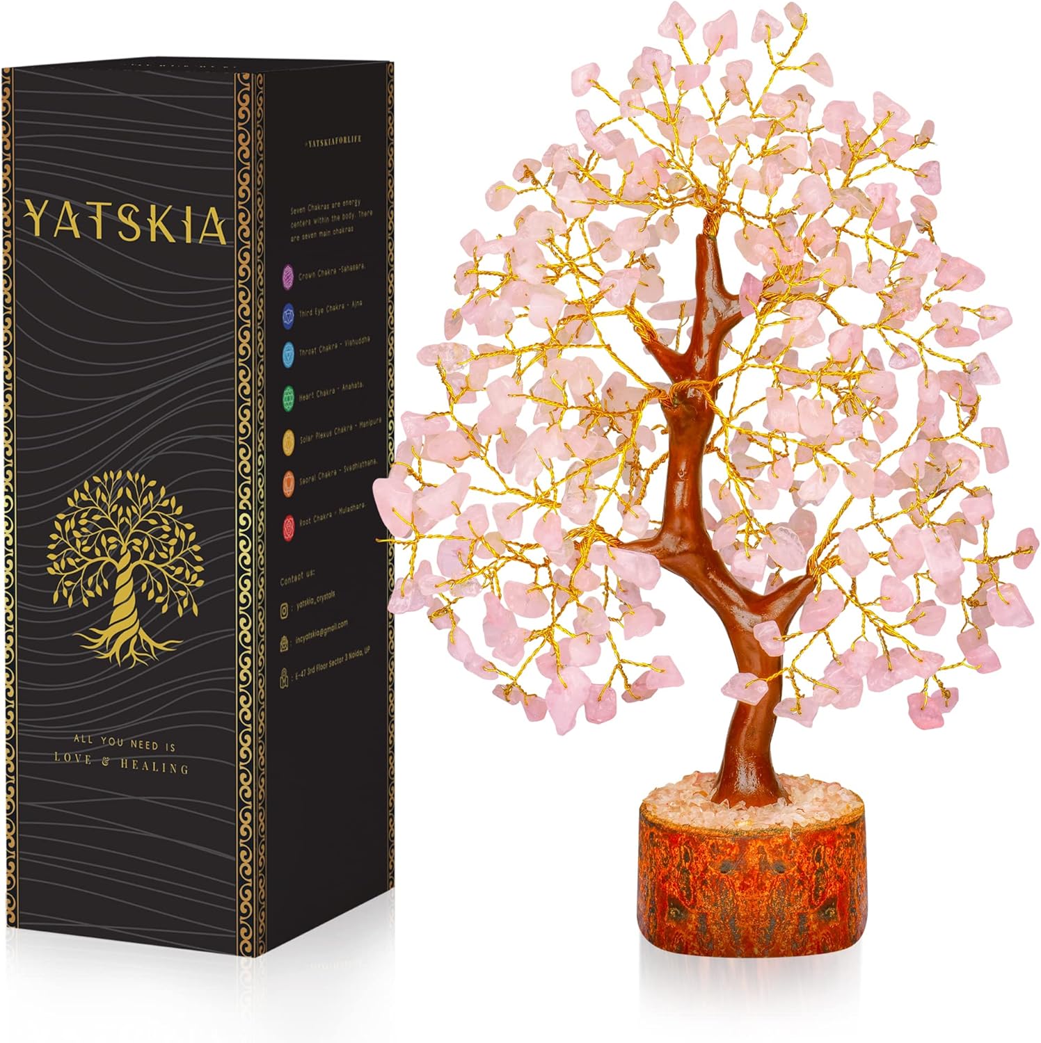 Beautifully Handcrafted Chakra Tree: This Yatskia Chakra Crystal Tree features all seven chakra gemstones with a wooden base and a golden wire trunk covered with m-seal. Standing approximately 10-12 inches tall, it creates a space where energy can flow freely and attract positive vibes. Perfect as birthday gifts for women, mothers day gifts, or sister birthday gifts.